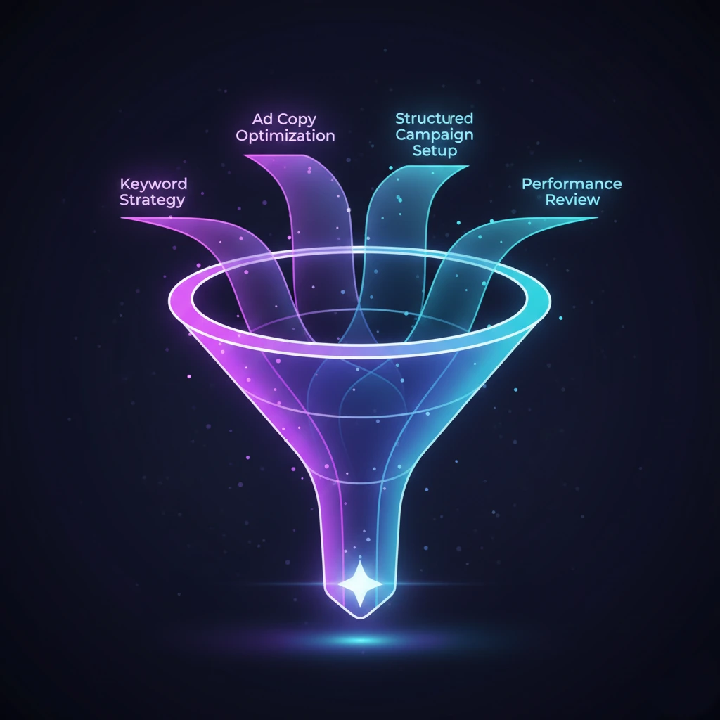 Clean ad groups and relevant keywords support better performance. Landing pages match user intent and reduce drop-off. Pages load fast and guide visitors toward action with less confusion.