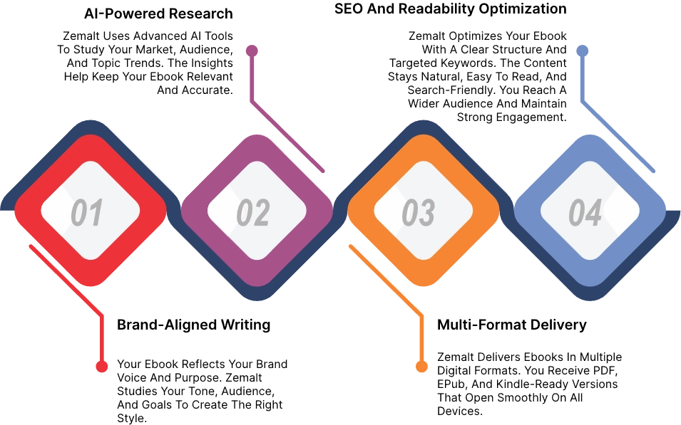 Zemalt creates ebooks for brands, professionals, and entrepreneurs who want powerful, polished content. Our team builds clear outlines and performs focused research before writing. Many businesses choose us when they need professional ebook writers who understand structure and clarity.