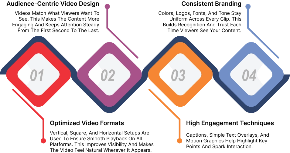 - Platform-Specific Expertise: Videos are optimized for vertical, square, and horizontal formats across TikTok, Instagram Reels, YouTube Shorts, and more to improve reach and performance.