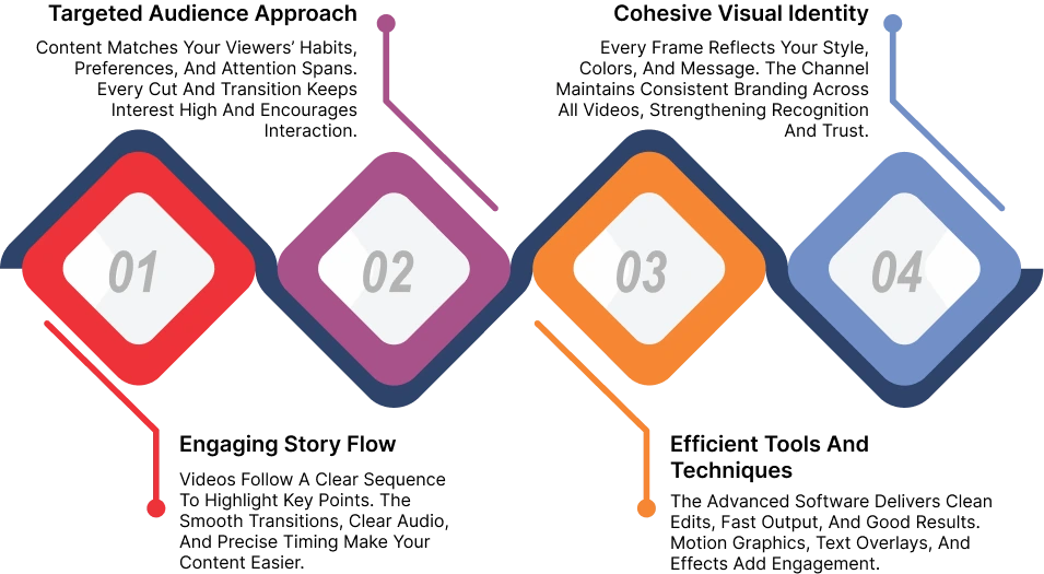 - Consistent Branding: Edits maintain brand identity through colors, style, and tone, strengthening channel recognition, viewer trust, and professional appeal.